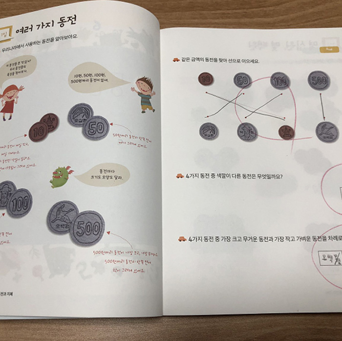 | 교재소개 | 예비 초등 수학 길이와 화폐는 길이를 재고, 물건값을 계산하는 방법만 다루는 것이 아닙니다. 예비 초등생들이 수학에 대한 흥미와 자신감을 갖기 위해 초등수학의 기초 단원 대비와 실생활 연관 문항, 문장제, 다양한 형태의 문항으로 구성하였고, 귀여운 캐릭터와 자연스러운 색감을 사용한 교재입니다. 교재 뒷쪽에 부록으로 직접 활용할 수 있도록 뜯어서 사용하는 자, 길이 비교 막대, 동전, 지폐 등의 교구재와 붙임딱지를 넉넉한 양으로 구성하였습니다. |
